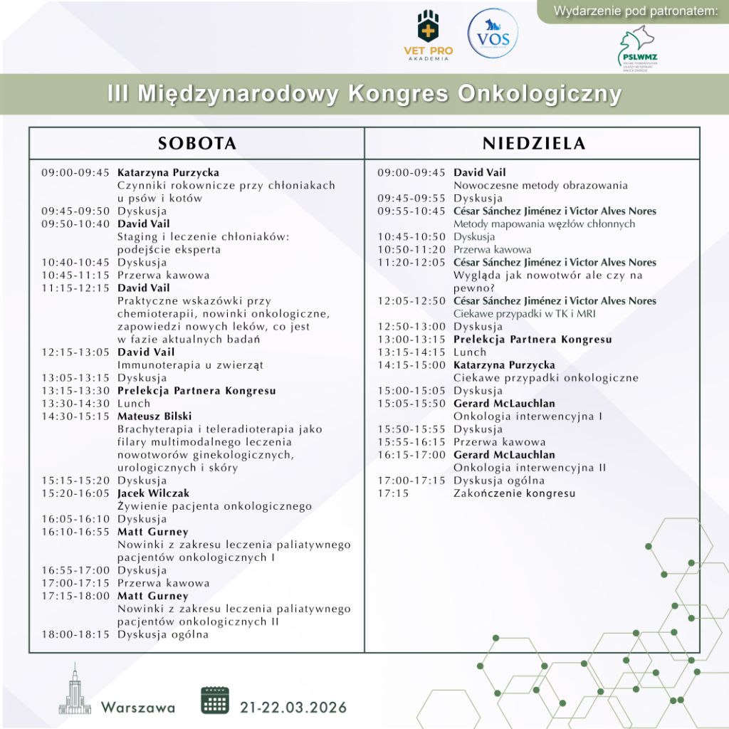 uprzejmie informujemy, iż Polskie Stowarzyszenie Lekarzy Weterynarii Małych Zwierząt objęło Patronatem III Międzynarodowy Kongres Onkologiczny organizowany przez Vet Pro Akademię.